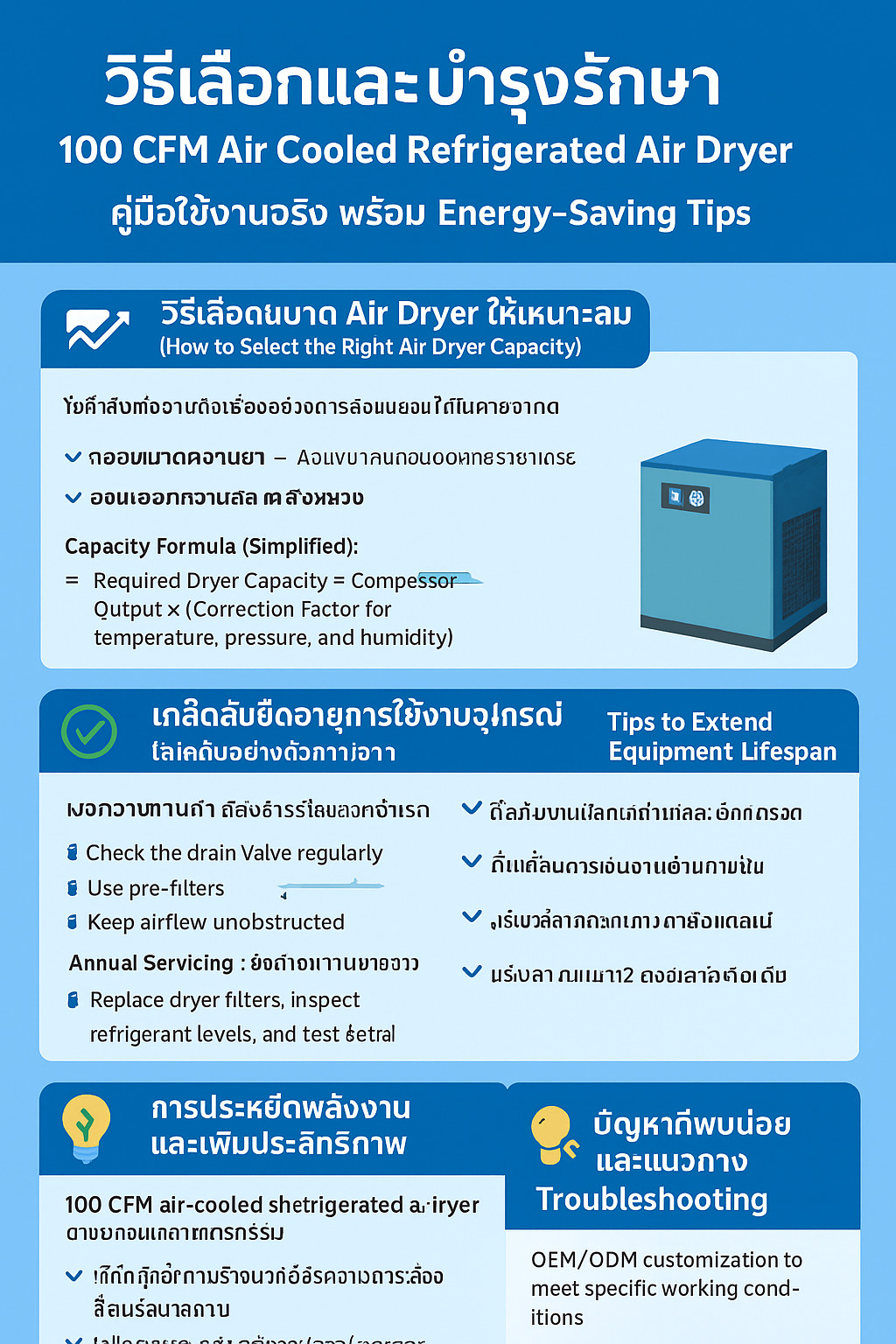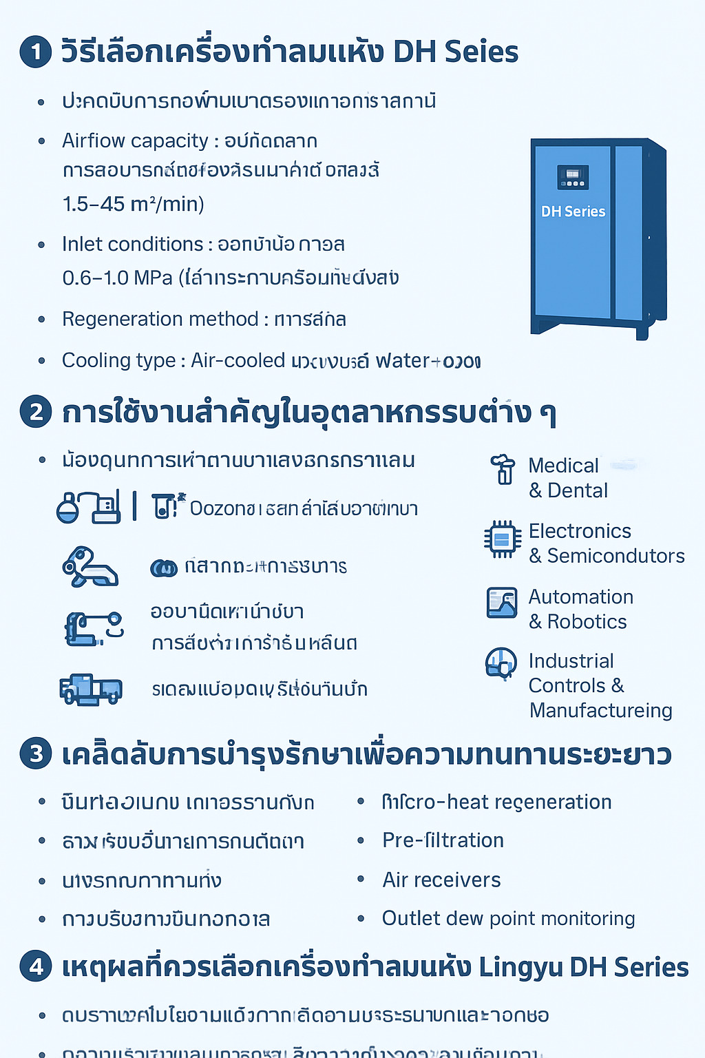 เครื่องทำลมแห้งแบบผสม DH Series Compressed Air Dryer: Selection, Uses & Maintenance