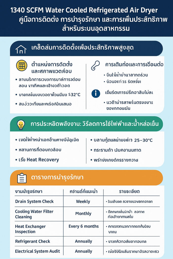 บทความนี้จะอธิบายทุกสิ่งที่ควรรู้ เพื่อให้เครื่อง Lingyu 1340 SCFM Water Cooled Refrigerated Air Dryer ทำงานได้เต็มประสิทธิภาพ ประหยัดพลังงาน และมีความทนทานสูงสุด
