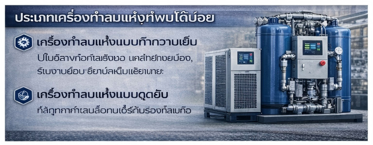 ประเภททั่วไปของระบบทำลมแห้งสำหรับเครื่องอัดอากาศ (Common Types of Air Dryer Systems)