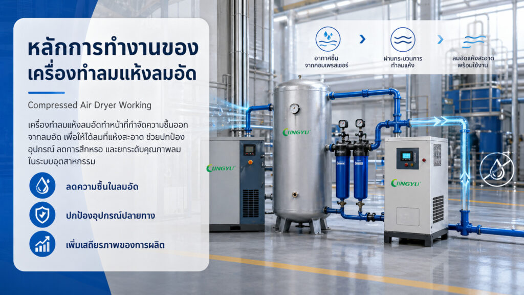 หลักการทำงานของเครื่องทำลมแห้งลมอัด (Compressed Air Dryer Working Principle)