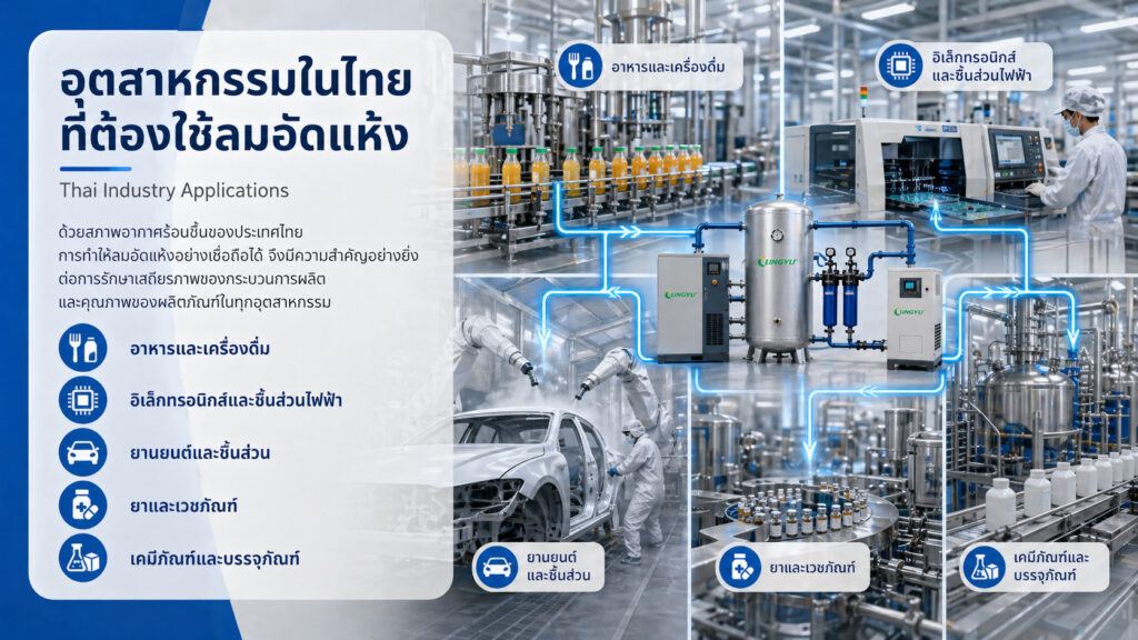 หากปรับให้เข้ากับบริบทของไทย อุตสาหกรรมที่มีความต้องการลมอัดแห้งสูงเป็นพิเศษ ได้แก่