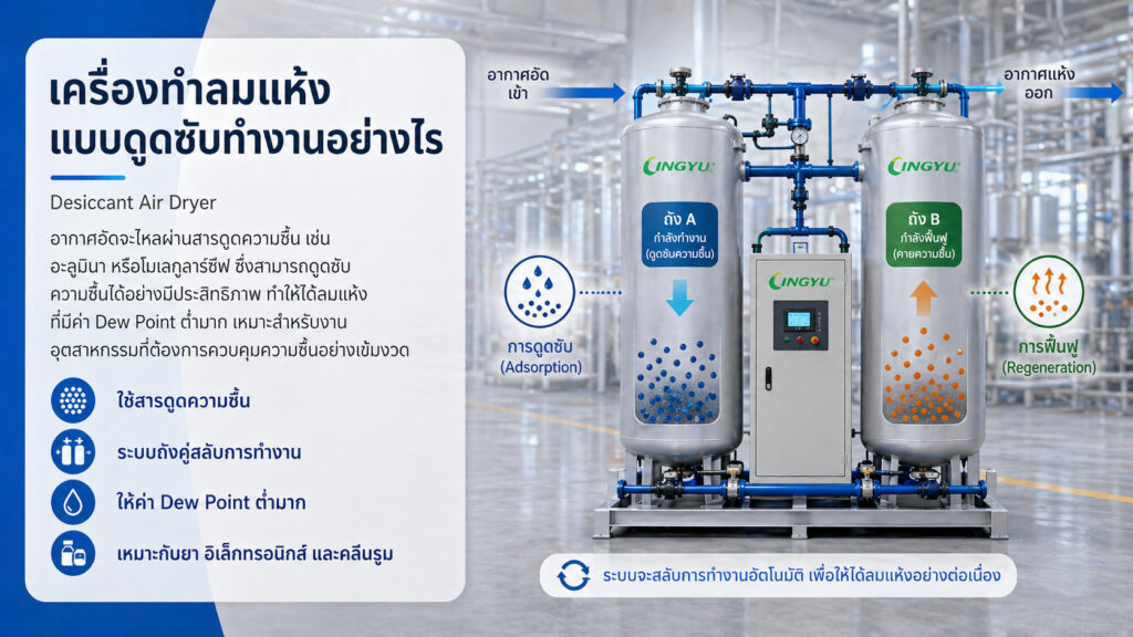 เครื่องทำลมแห้งลมอัดแบบดูดซับทำงานอย่างไร