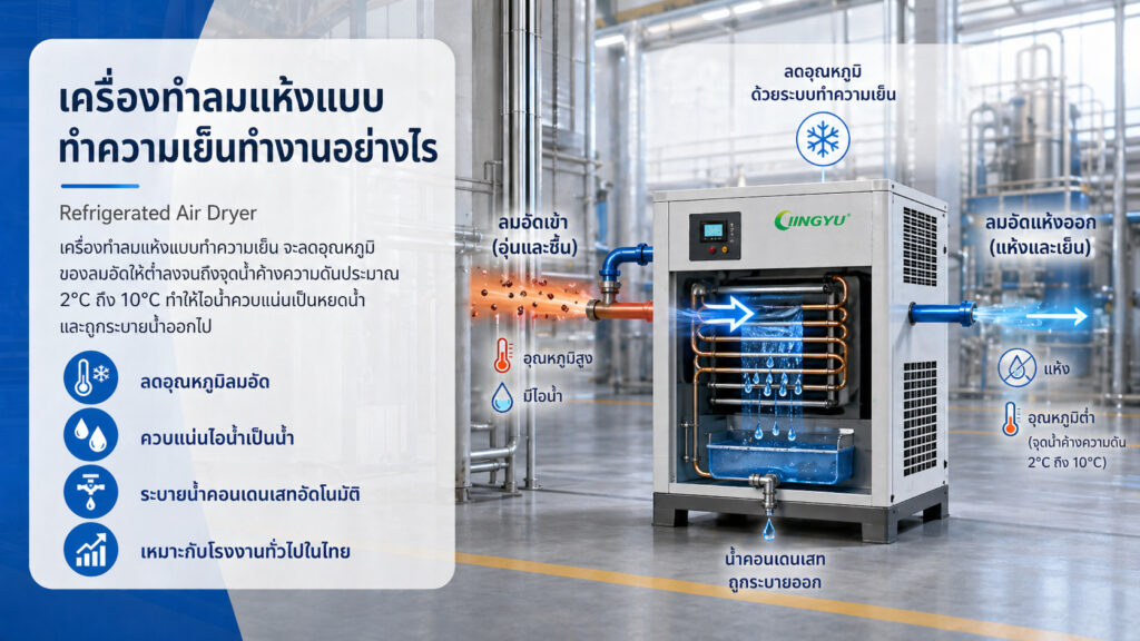 เครื่องทำลมแห้งลมอัดแบบทำความเย็นทำงานอย่างไร
