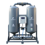 เครื่องทำลมแห้งแบบดูดซับชนิดไร้ความร้อนรุ่น HH Series Heatless Regeneration Adsorption Dryer ใช้หลักการดูดซับด้วยความดัน (Variable Pressure Adsorption) ร่วมกับสารดูดซับประสิทธิภาพสูงอย่าง Activated Alumina และ Molecular Sieve เพื่อให้ได้ลมอัดที่แห้งเป็นพิเศษ (Ultra-dry Compressed Air)