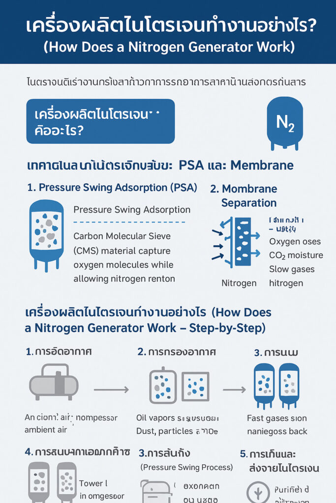 เครื่องผลิตไนโตรเจนทำงานอย่างไร? (How Does a Nitrogen Generator Work – Step-by-Step)