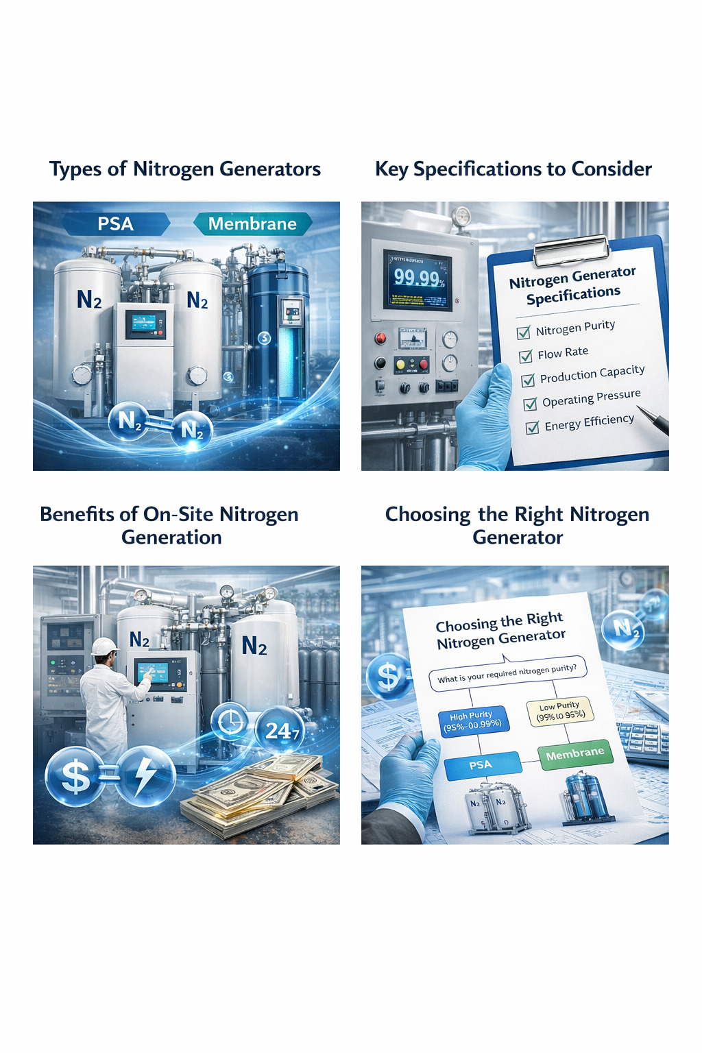 - เครื่องผลิตไนโตรเจน (Nitrogen Generator – PSA หรือ Membrane)