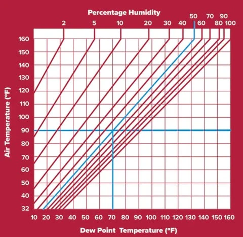 ตัวอย่างเช่น หากจุดน้ำค้างของเครื่องเป่าลมเย็นคือ 3°C หมายความว่า ตราบใดที่อุณหภูมิของลมสูงกว่าระดับนี้ จะไม่มีการกลั่นตัวเกิดขึ้นภายในระบบ