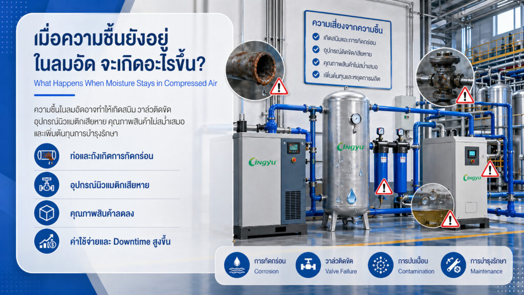 ความชื้นในลมอัดอาจดูเหมือนเป็นปัญหาเล็กในช่วงแรก แต่ในการใช้งานอุตสาหกรรมจริง มันสามารถก่อให้เกิดความเสี่ยงในการดำเนินงานอย่างมาก
