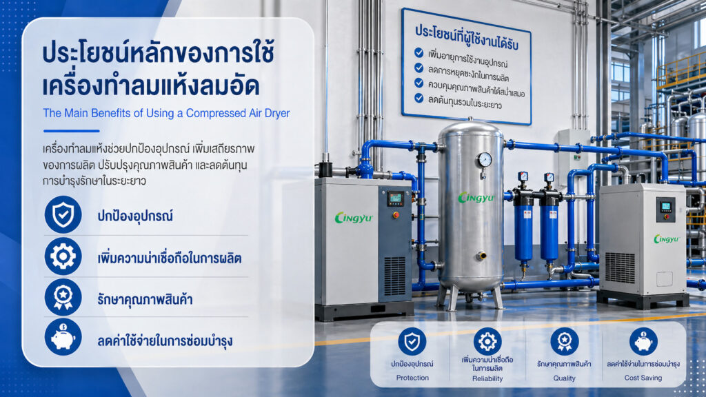 ประโยชน์หลักของการใช้เครื่องทำลมแห้งลมอัด (Compressed Air Dryer)