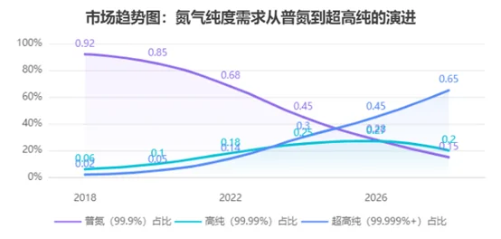 ในปัจจุบัน เมื่ออุตสาหกรรมเกิดใหม่อย่างเซมิคอนดักเตอร์และโซลาร์เซลล์เติบโต รวมถึงอุตสาหกรรมเคมีและชีวเภสัชกรรมมีการอัปเกรด ระบบผลิตก๊าซไนโตรเจนจำเป็นต้องมีความบริสุทธิ์สูงกว่า 99.999% พร้อมประสิทธิภาพด้านพลังงานที่เหนือกว่า